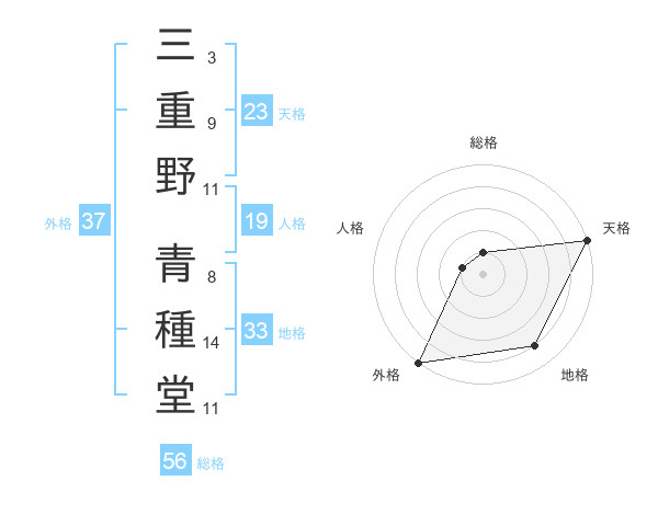 三重野 青種堂さんを姓名の画数から五運を鑑定
