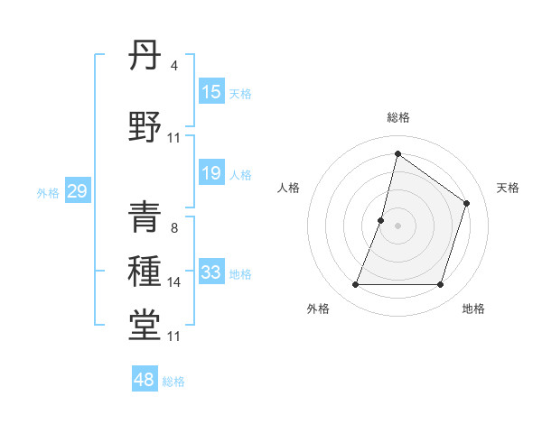丹野 青種堂さんを姓名の画数から五運を鑑定