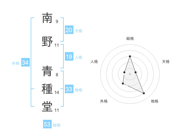 南野 青種堂さんを姓名の画数から五運を鑑定