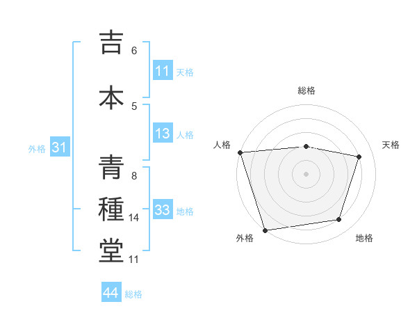 吉本 青種堂さんの天格は11画の4点!