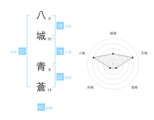 八城 青蒼さんの外格は22画の1点!