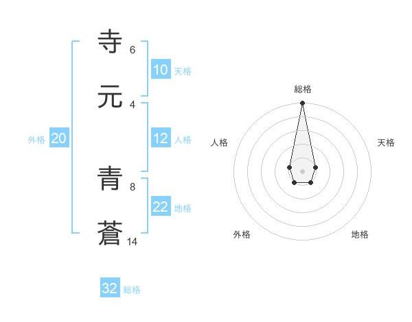 寺元 青蒼さんの総格は32画の5点!