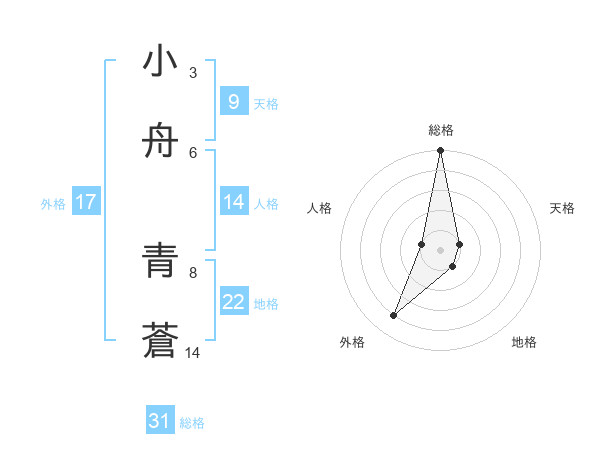 小舟 青蒼さんを姓名の画数から五運を鑑定