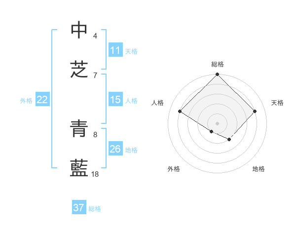中芝 青藍さんを姓名の画数から五運を鑑定