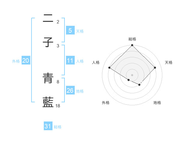二子 青藍さんの天格は5画の4点!
