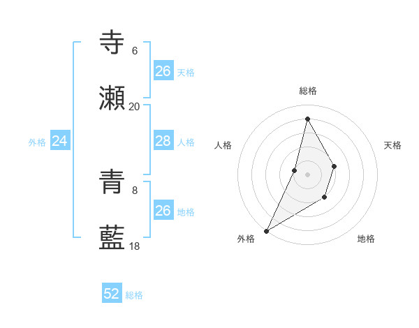 寺瀬 青藍さんの天格は26画の2点!