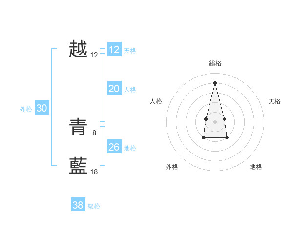 越 青藍さんの総格は38画の4点!
