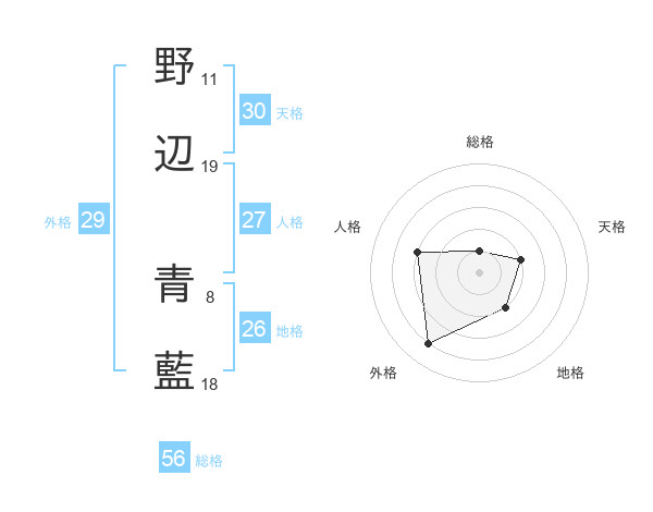 野辺 青藍さんを姓名の画数から五運を鑑定
