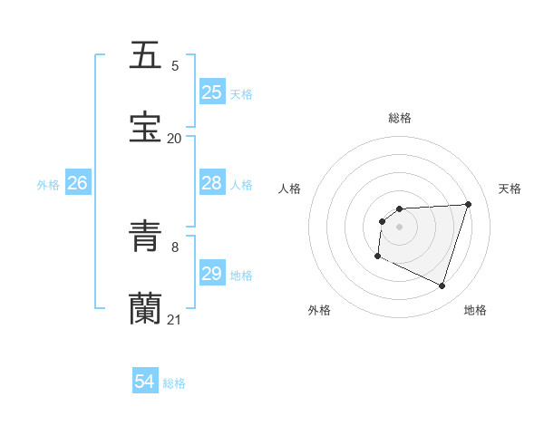 五宝 青蘭さんの総格は54画の1点!