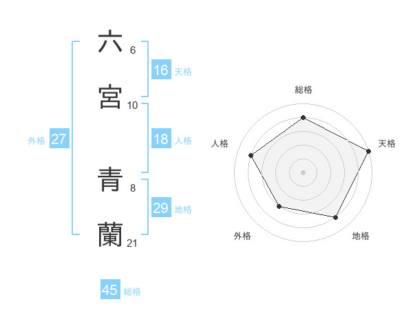 六宮 青蘭さんの総格は45画の4点!