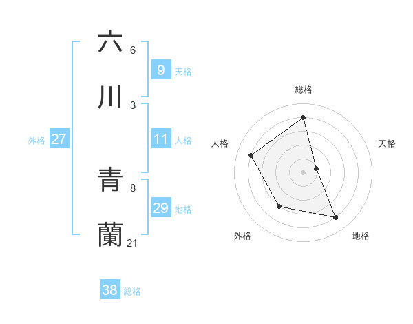 六川 青蘭さんの総格は38画の4点!