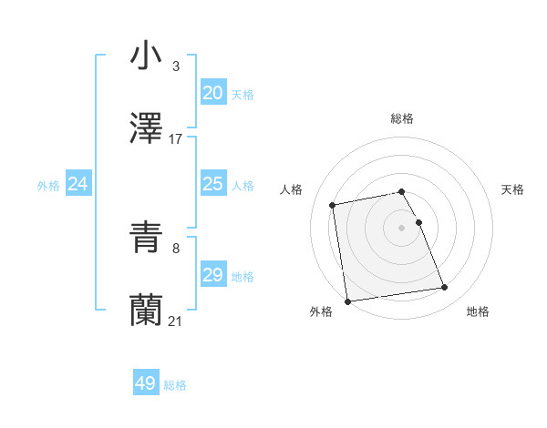 小澤 青蘭さんの外格は24画の5点!