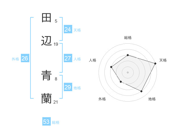 田辺 青蘭さんの天格は24画の5点!