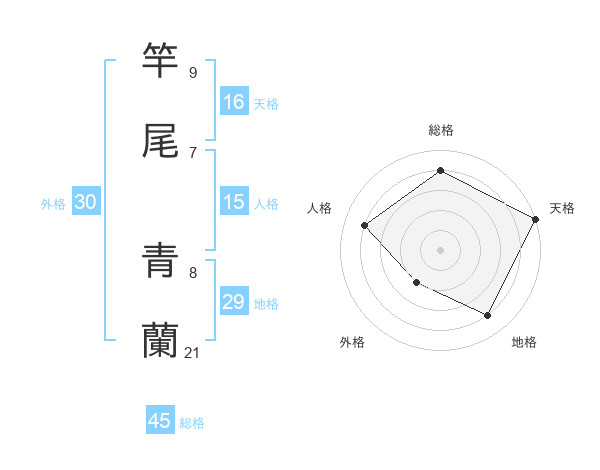 竿尾 青蘭さんを姓名の画数から五運を鑑定