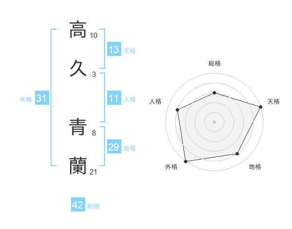 高久 青蘭さんの総格は42画の3点!