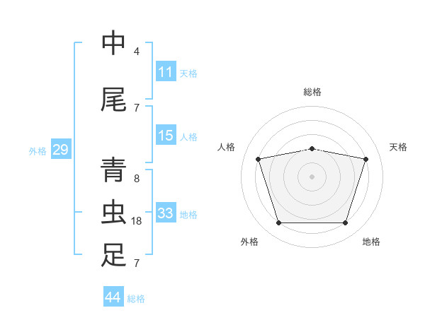 中尾 青虫足さんの総格は44画の2点!