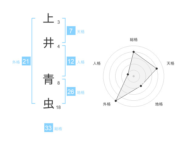 上井 青虫さんの天格は7画の4点!