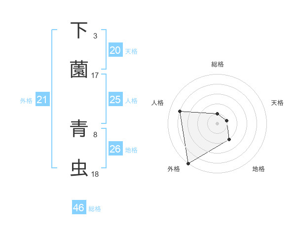 下薗 青虫さんの総格は46画の1点!