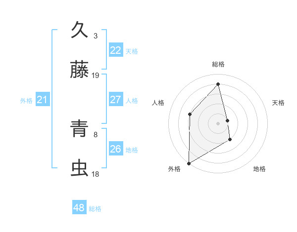 久藤 青虫さんを姓名の画数から五運を鑑定