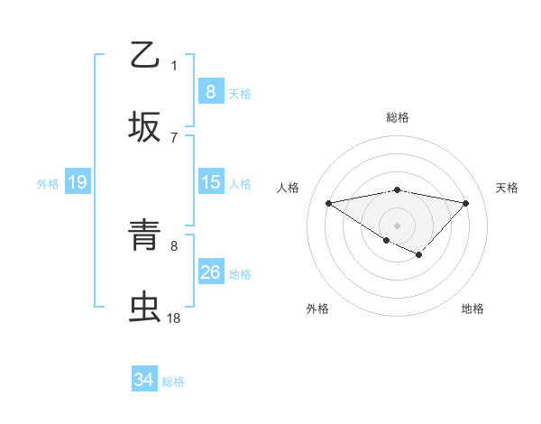 乙坂 青虫さんの天格は8画の4点!