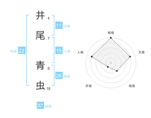井尾 青虫さんの総格は37画の5点!