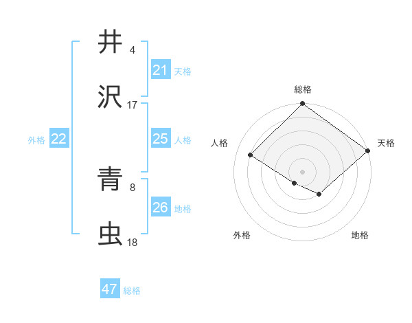 井沢 青虫さんを姓名の画数から五運を鑑定