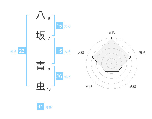 八坂 青虫さんの地格は26画の2点!