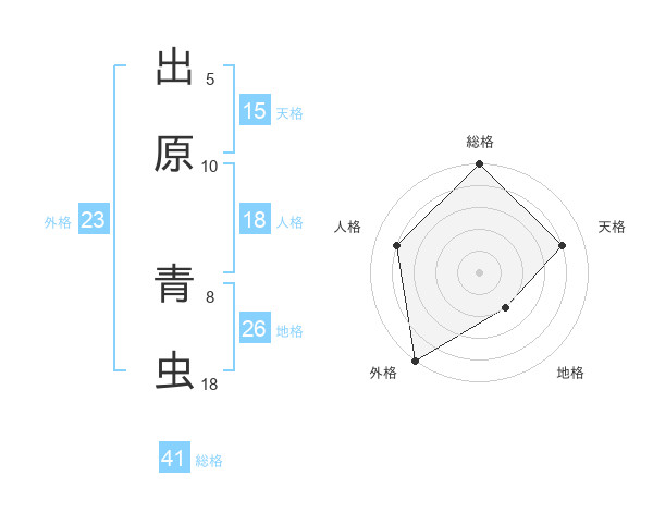 出原 青虫さんの総格は41画の5点!