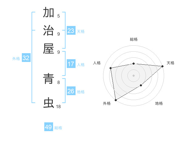 加治屋 青虫さんの総格は49画の2点