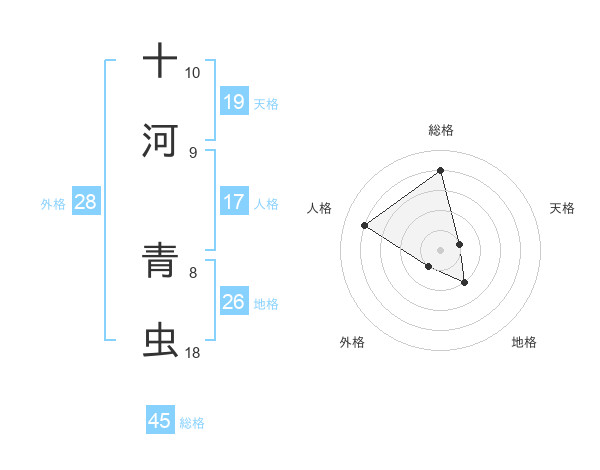 十河 青虫さんの総格は45画の4点!