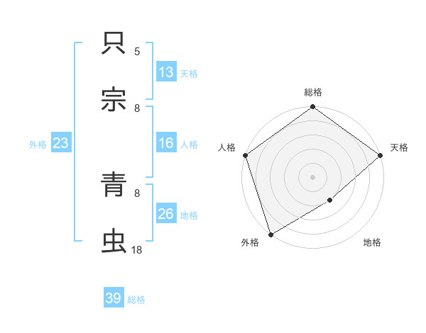 只宗 青虫さんを姓名の画数から五運を鑑定
