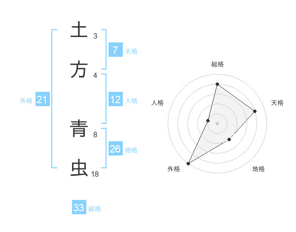 土方 青虫さんの総格は33画の4点!