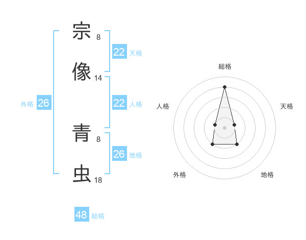 宗像 青虫さんの総格は48画の4点!