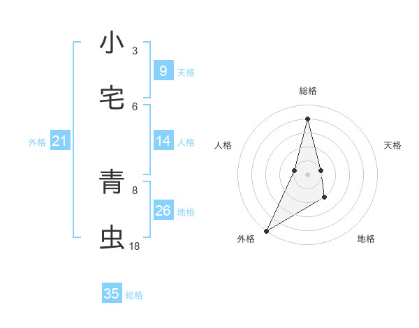 小宅 青虫さんの総格は35画の4点!