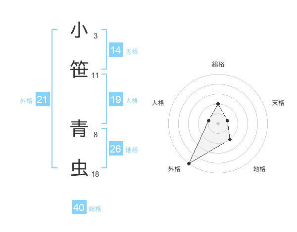 小笹 青虫さんを姓名の画数から五運を鑑定