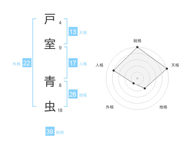 戸室 青虫さんの総格は39画の5点!