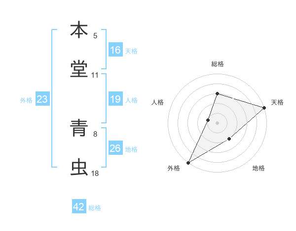 本堂 青虫さんの総格は42画の3点!