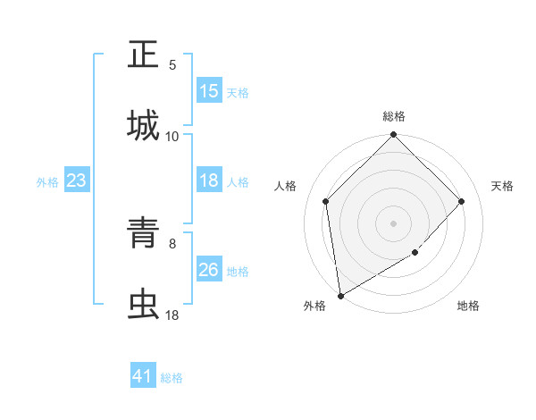 正城 青虫さんの外格は23画の5点!