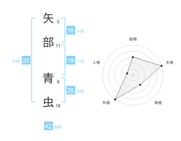 矢部 青虫さんを姓名の画数から五運を鑑定