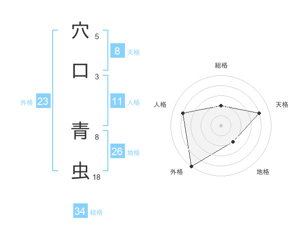 穴口 青虫さんを姓名の画数から五運を鑑定