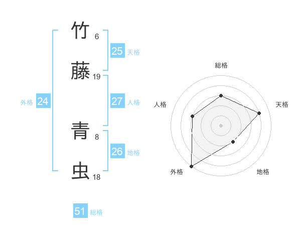 竹藤 青虫さんを姓名の画数から五運を鑑定