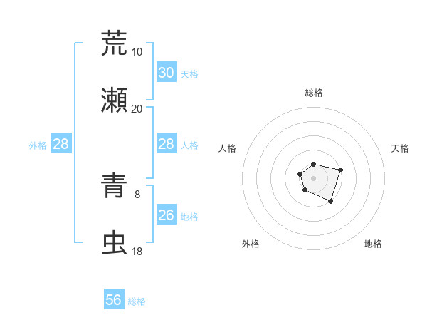 荒瀬 青虫さんの外格は28画の1点!