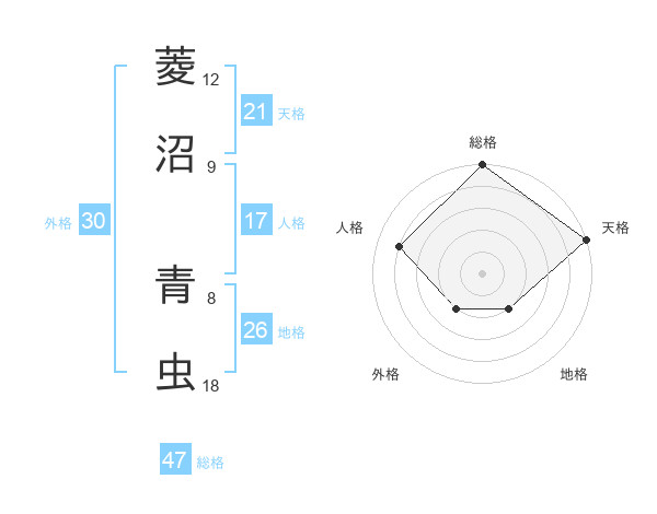 菱沼 青虫さんの総格は47画の5点!