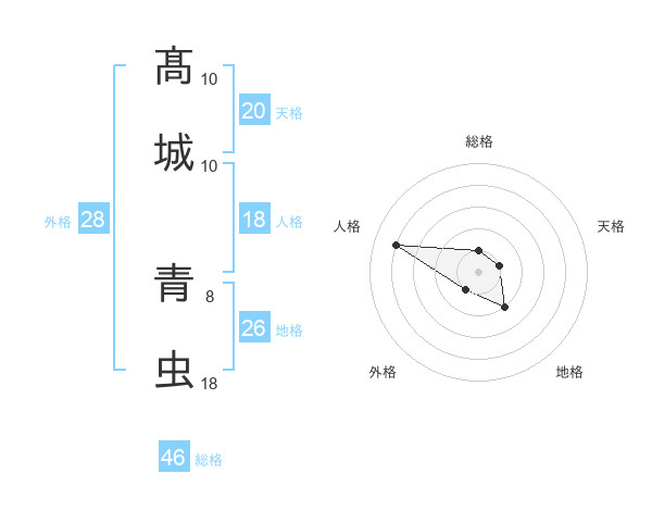 髙城 青虫さんを姓名の画数から五運を鑑定