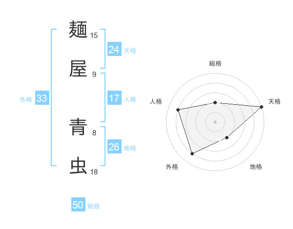 麺屋 青虫さんを姓名の画数から五運を鑑定