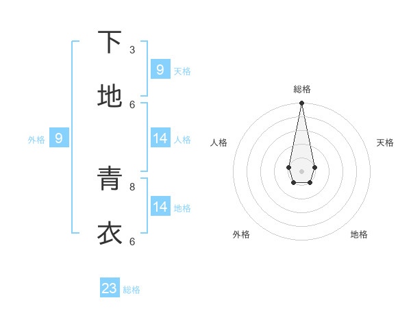 下地 青衣さんの総格は23画の5点!