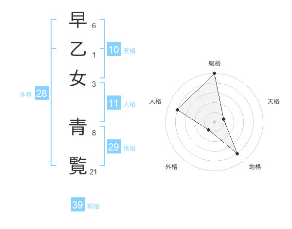 早乙女 青覧さんを姓名の画数から五運を鑑定