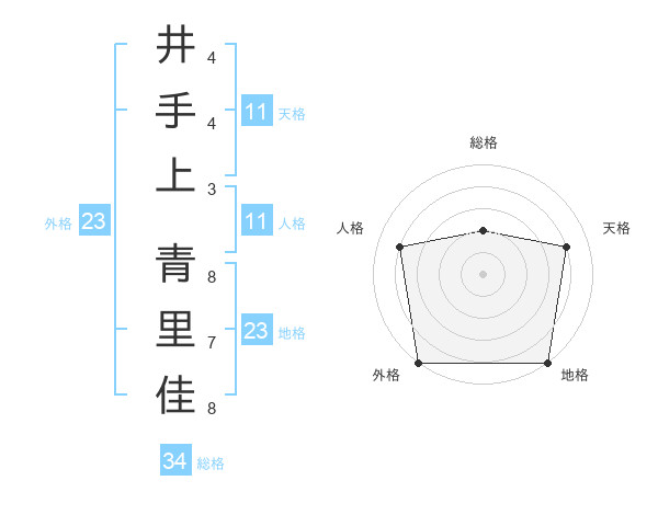 井手上 青里佳さんの外格は23画の5点