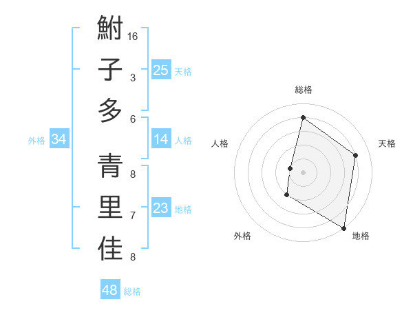鮒子多 青里佳さんの外格は34画の2点!