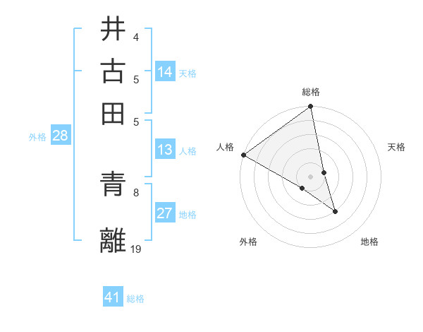 井古田 青離さんの総格は41画の5点!